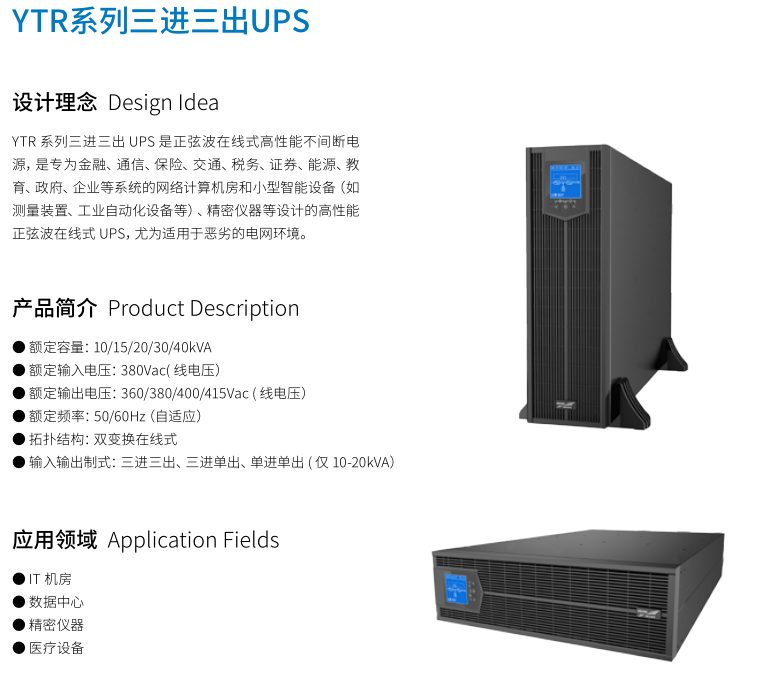 YTR 系列三進(jìn)三出 UPS 20-200kVA