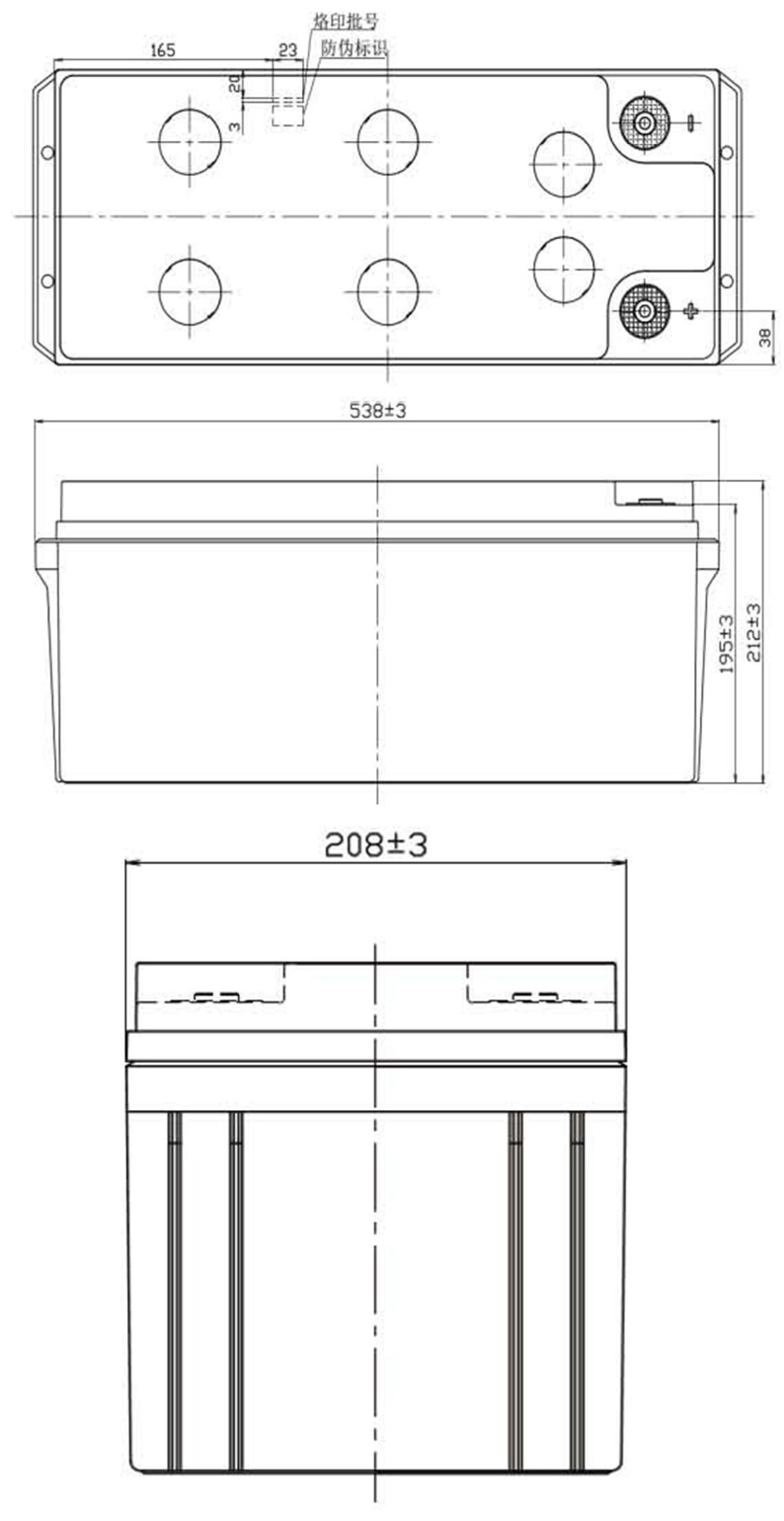 產(chǎn)品特點(diǎn):· 電池內(nèi)部無游離酸,可倒放90°安全使用· 合適的電解液比重,充分保證壽命 外形尺寸: 電池標(biāo)準(zhǔn): 電池特性: 放電電流及放電終止電壓: 電池限流